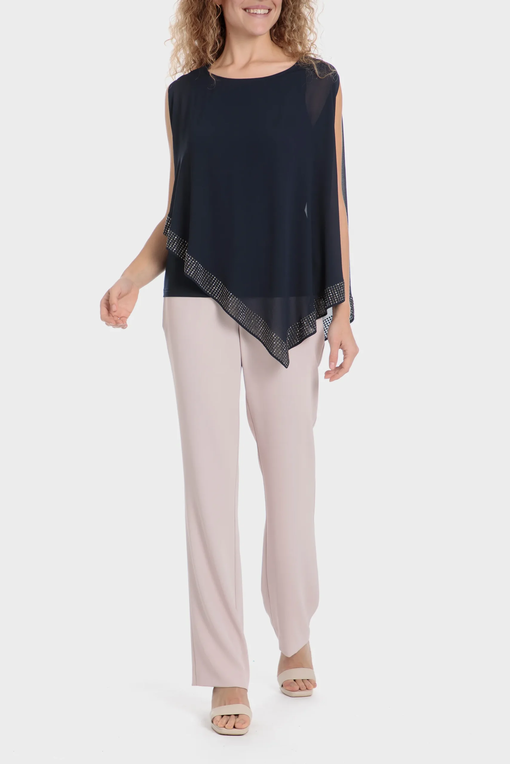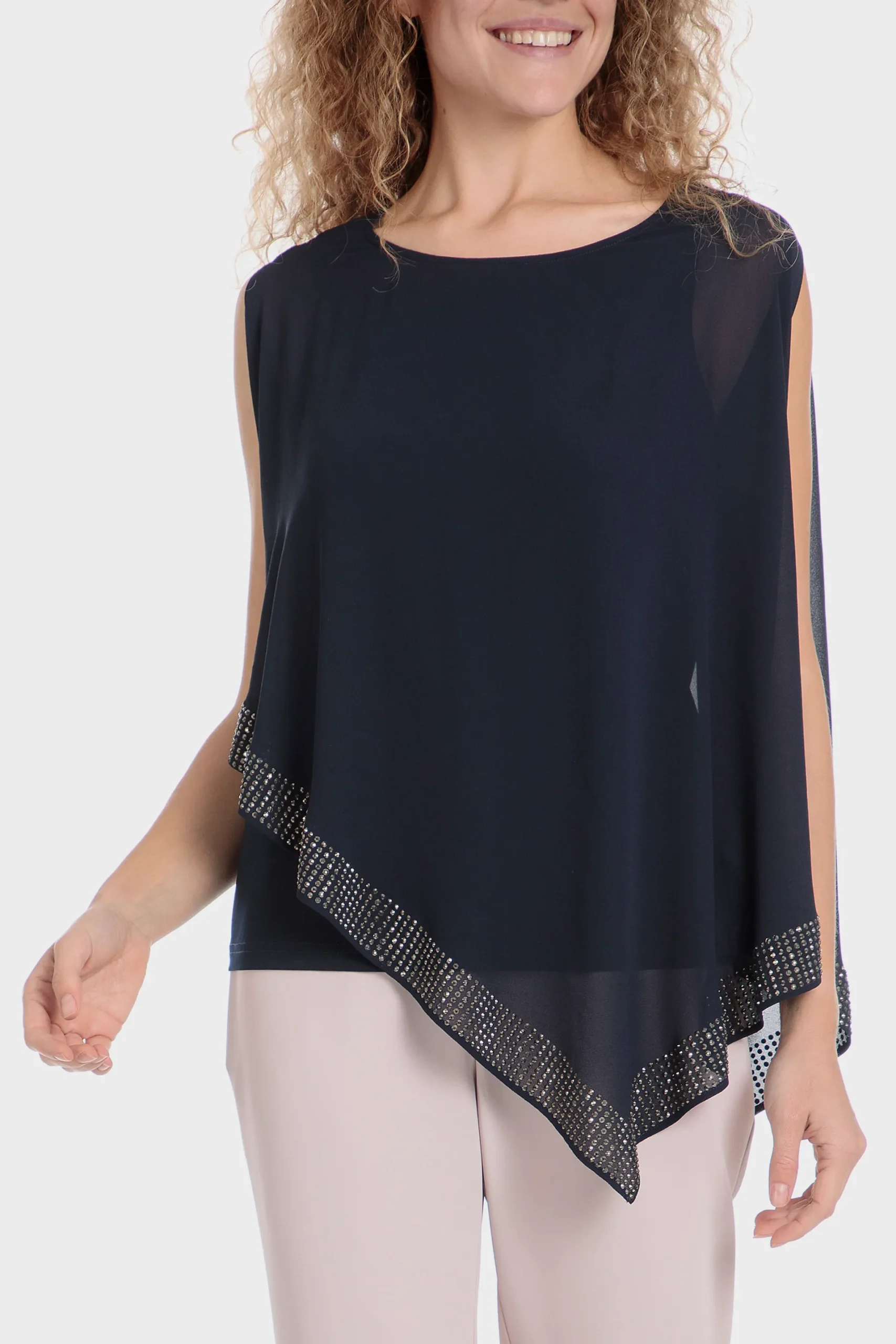 Blouse clous; effet double épaisseur; col rond; manches longues. Disponible en deux couleurs.