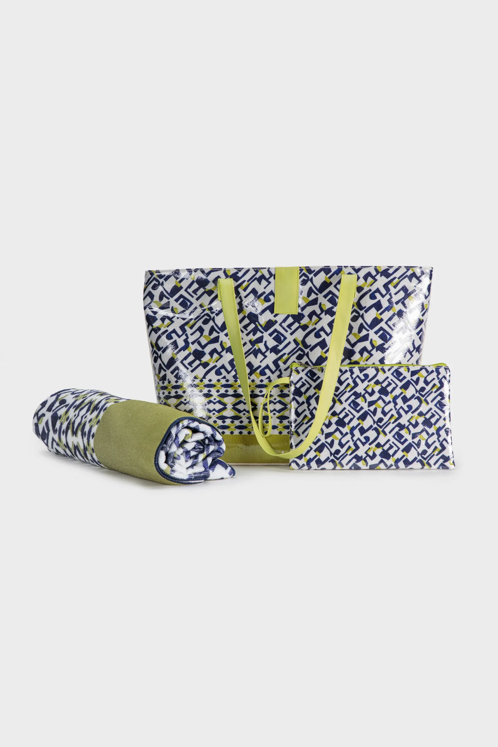 Ensemble imprimé; sac; serviette de plage; trousse de toilette.