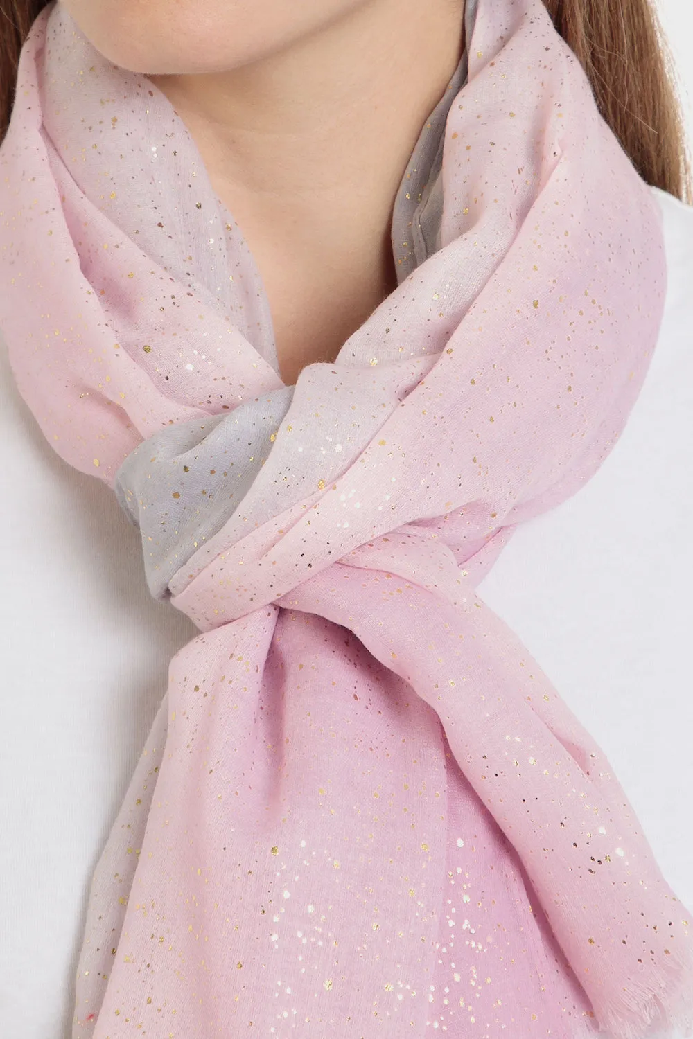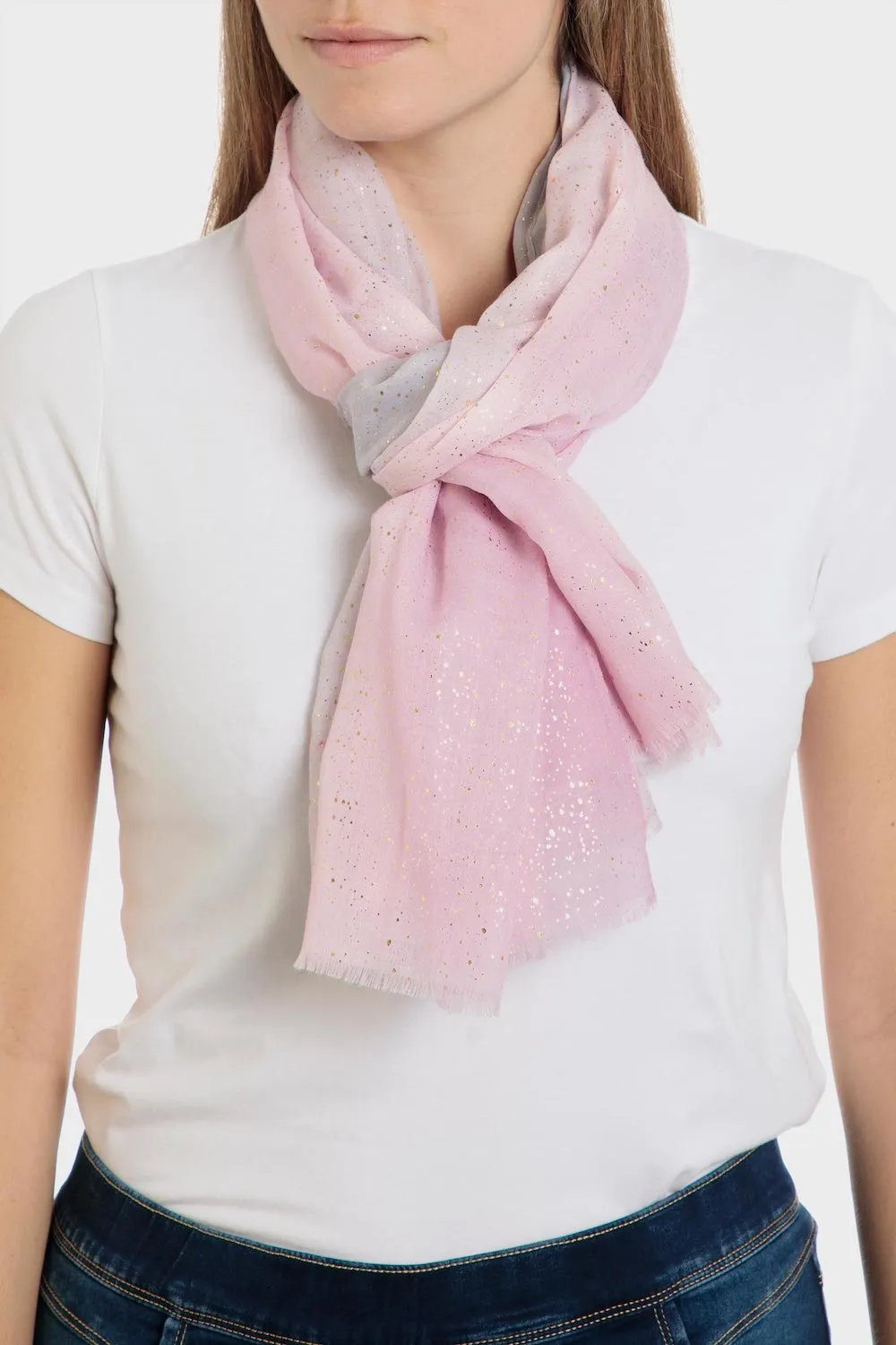 Étole dégradé, détails fantaisie, détails effilochés. Disponible dans plusieurs couleurs.