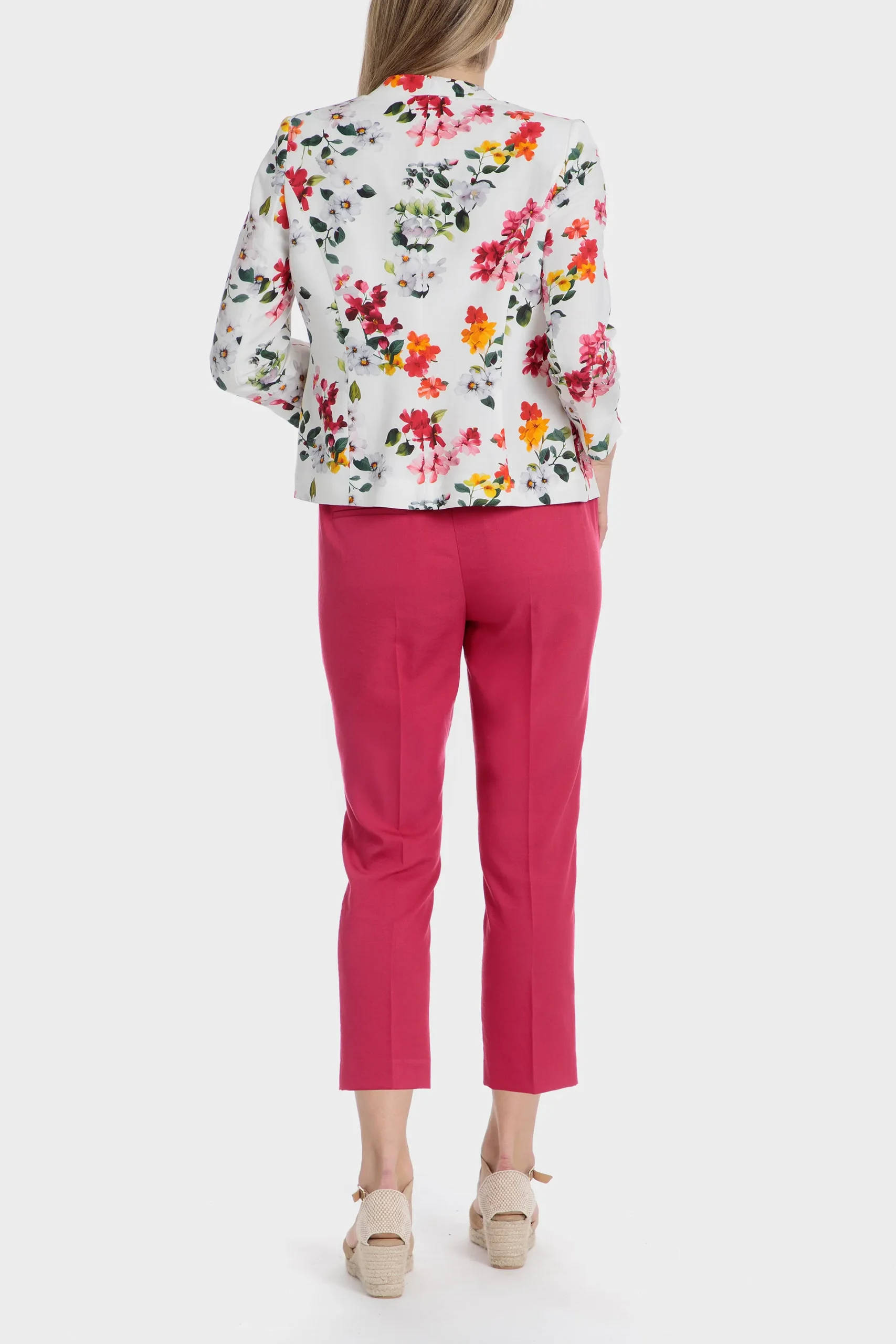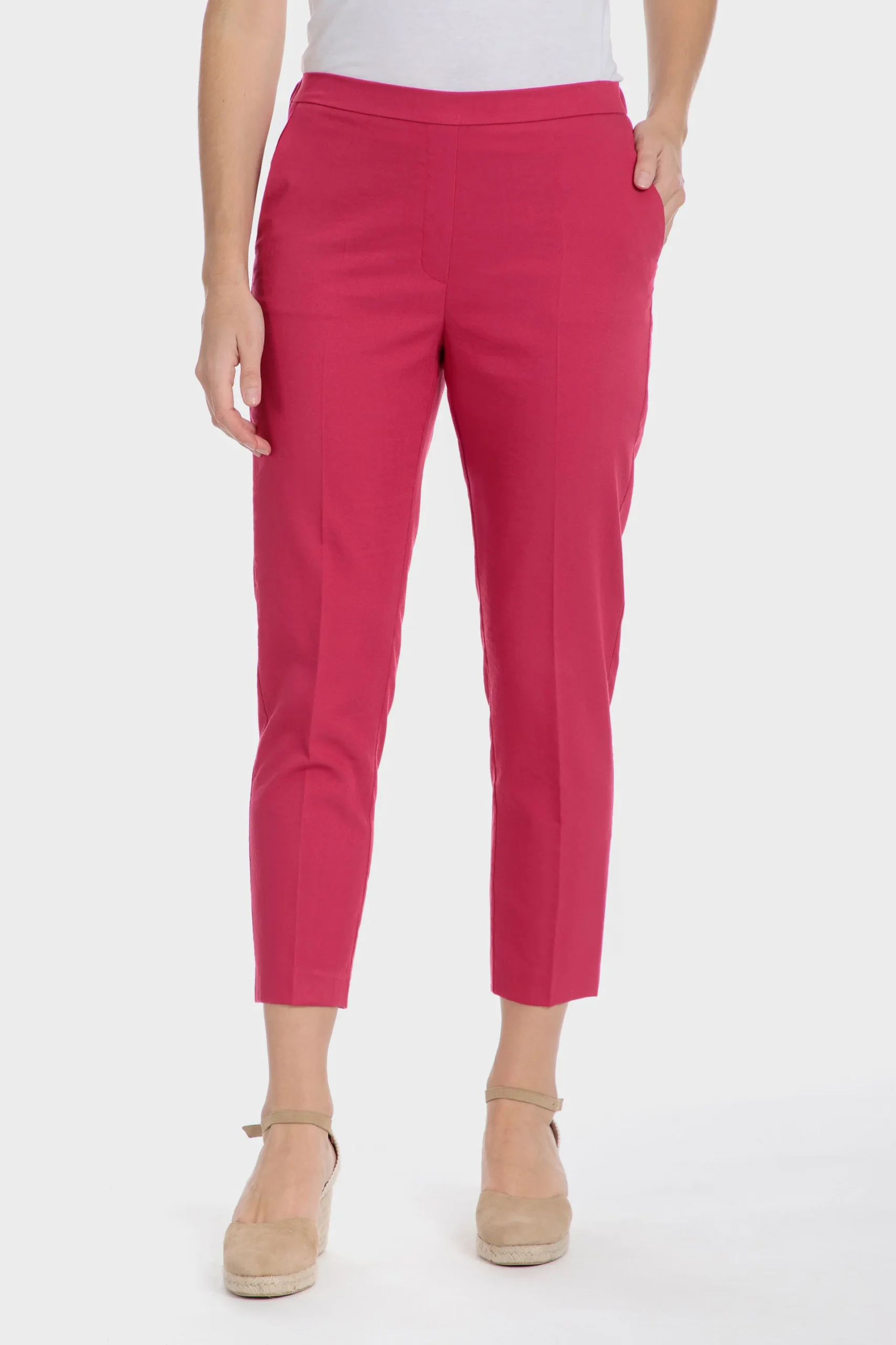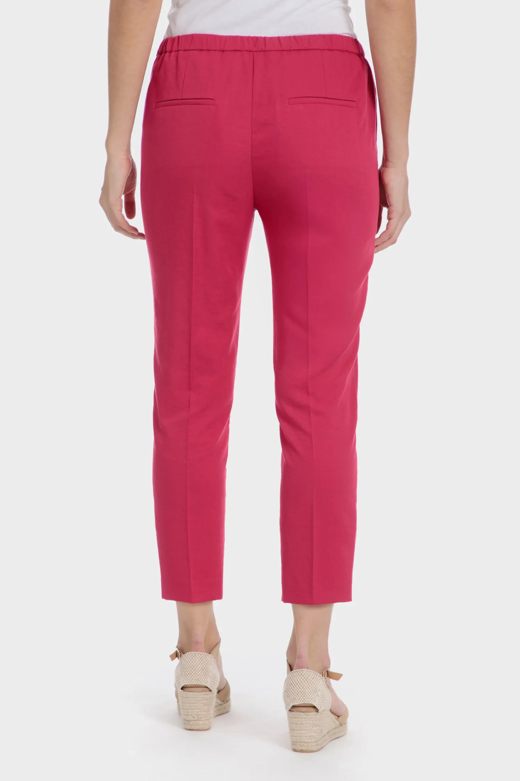 Pantalon fuchsia; style capri; taille élastique; quatre poches; complétez votre costume avec le blazer assorti.