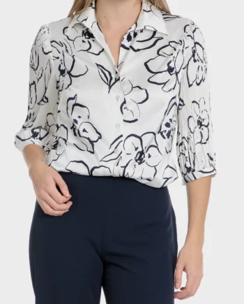 Robe imprimé feuilles, décolleté en v, manches courtes froncées.