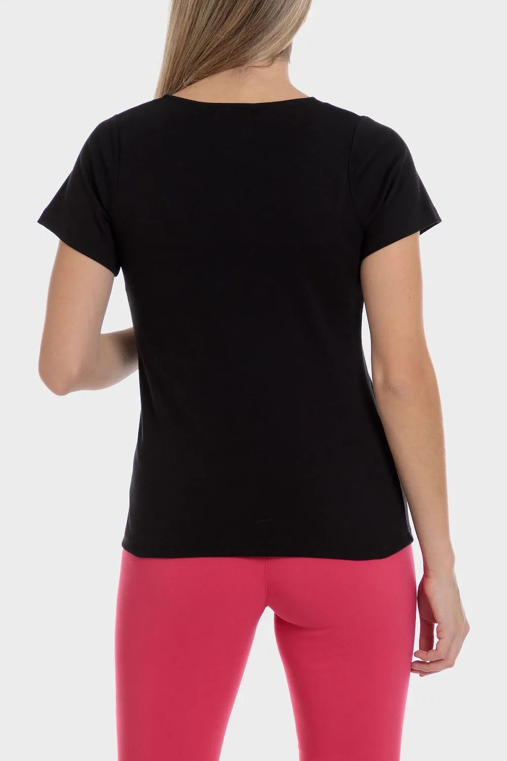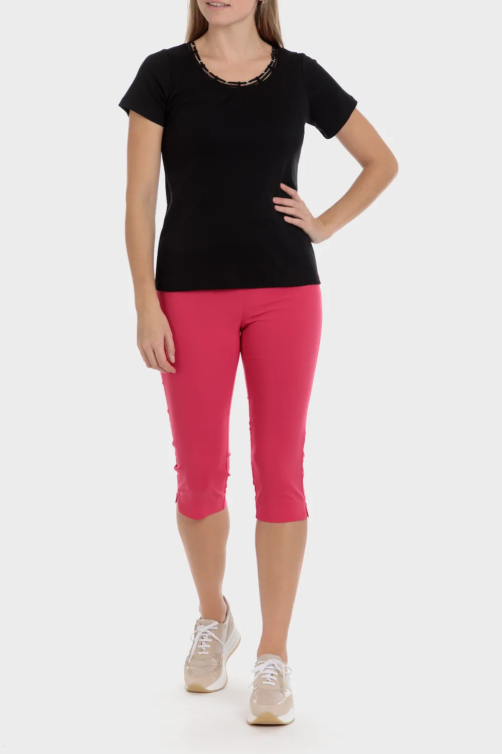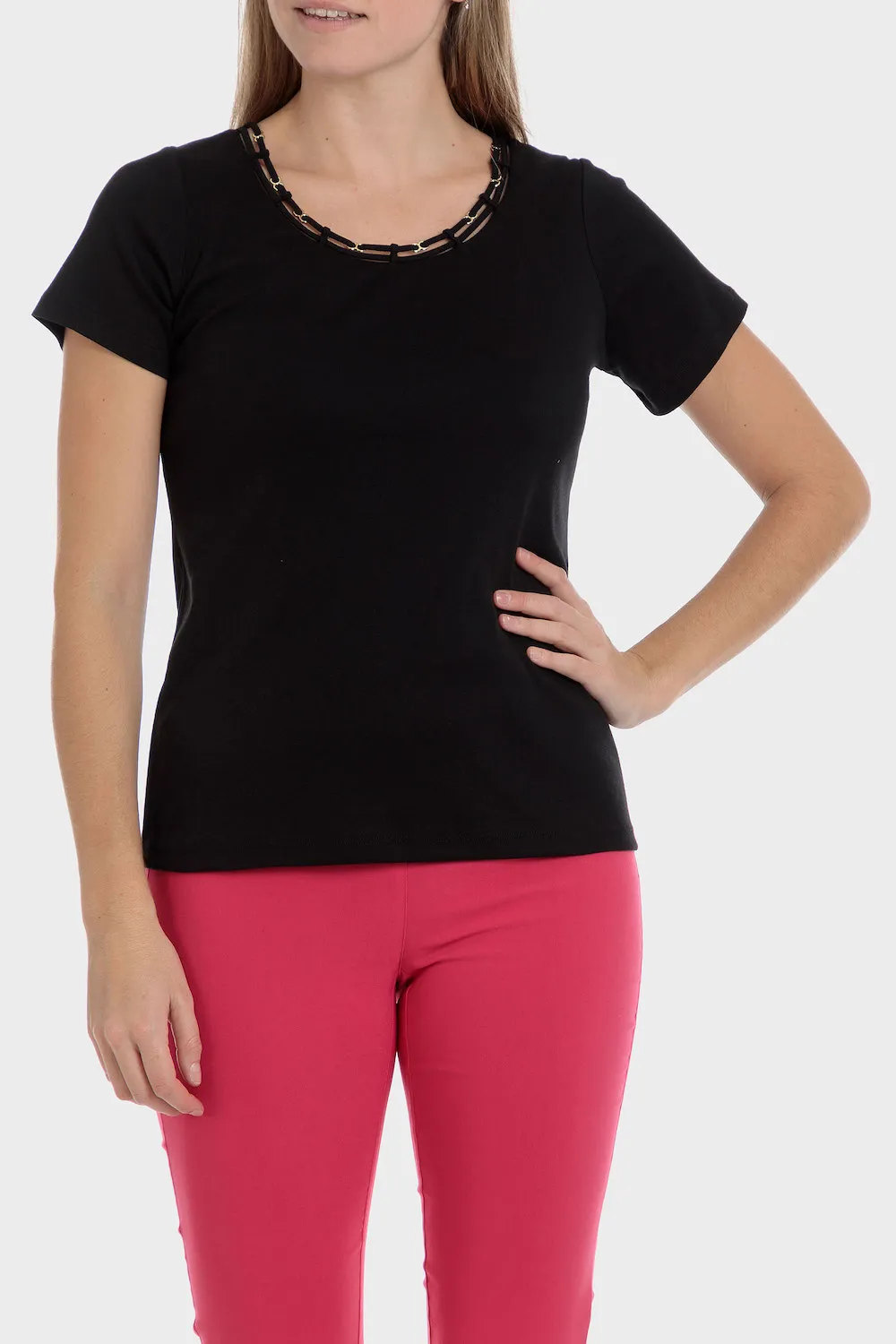 T-shirt basique, détails fantaisie, manches courtes, col rond. Disponible dans plusieurs couleurs.