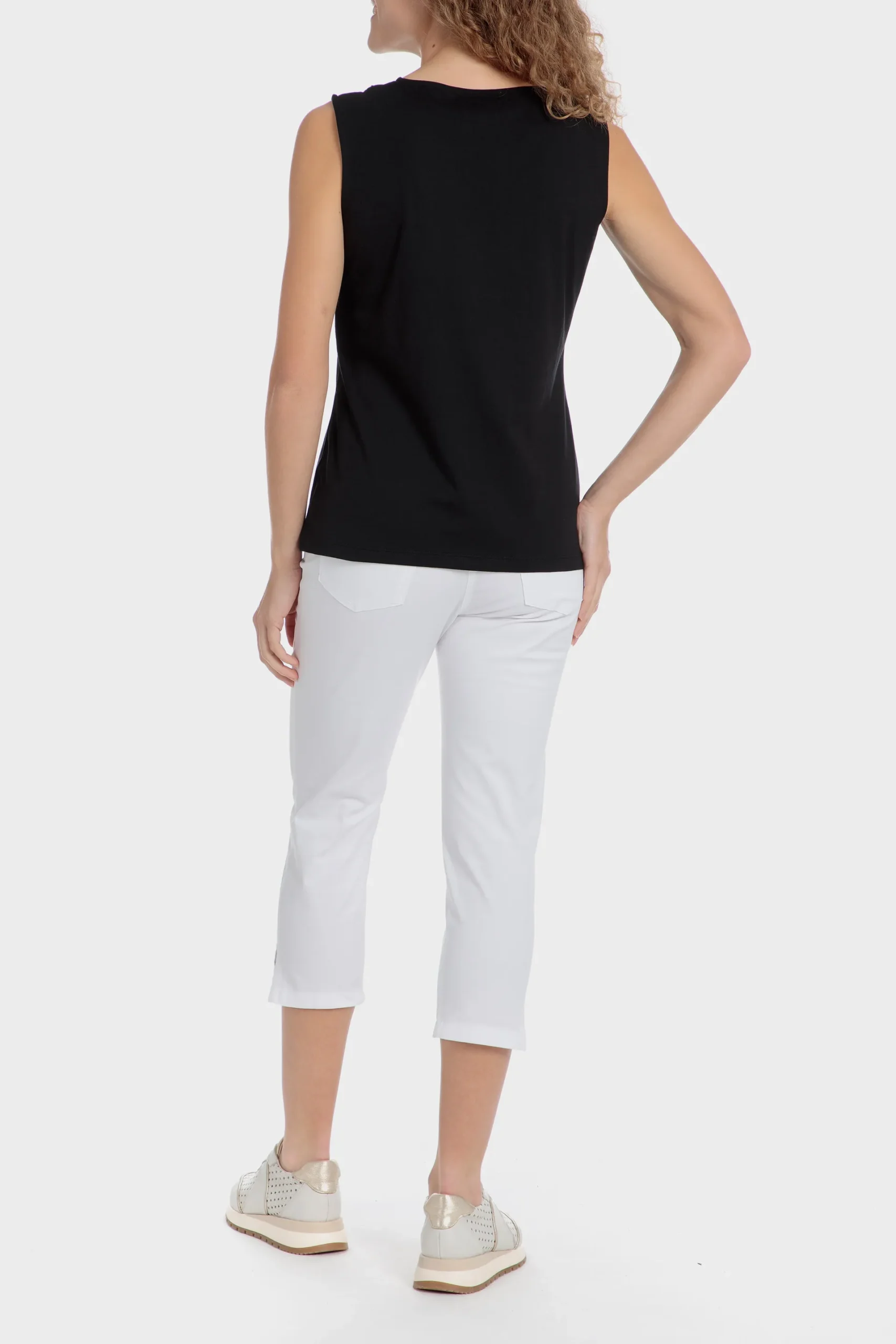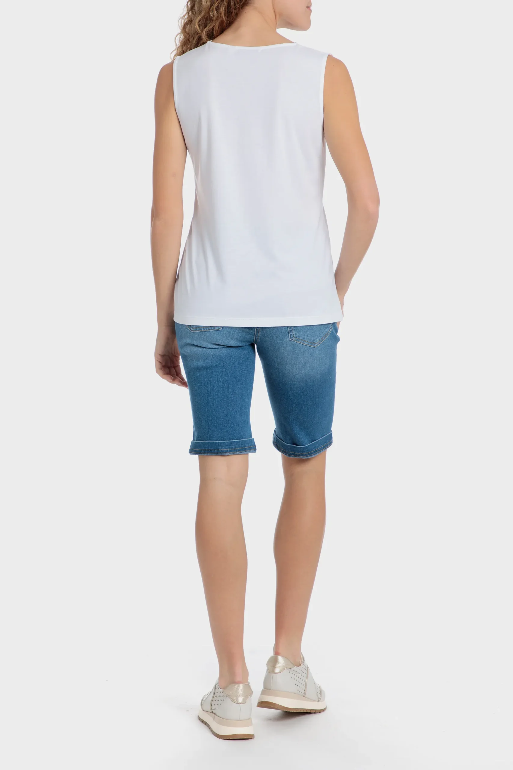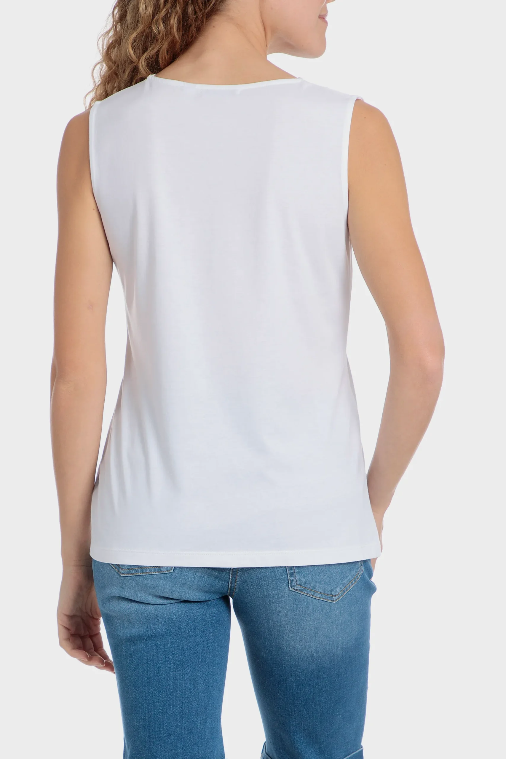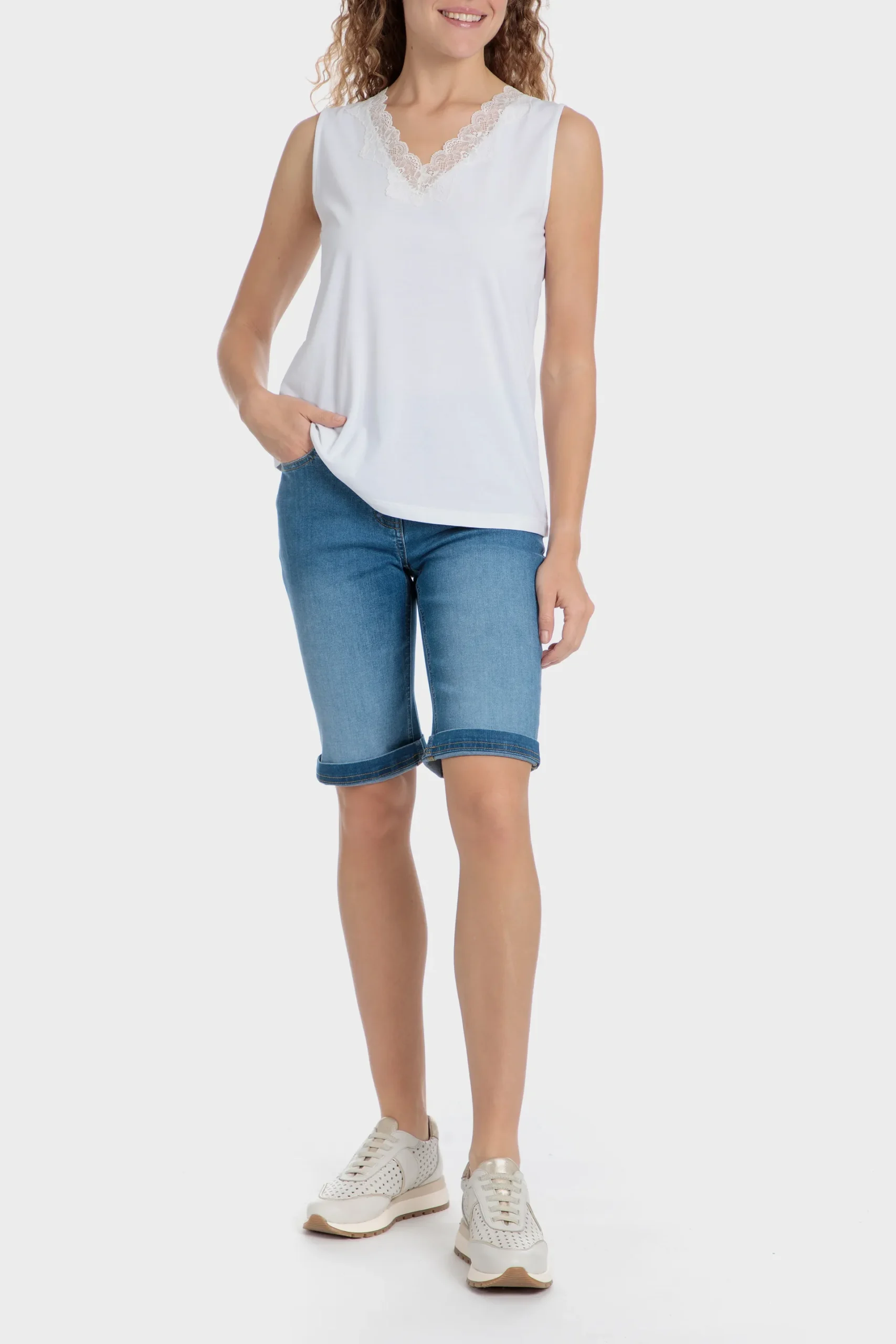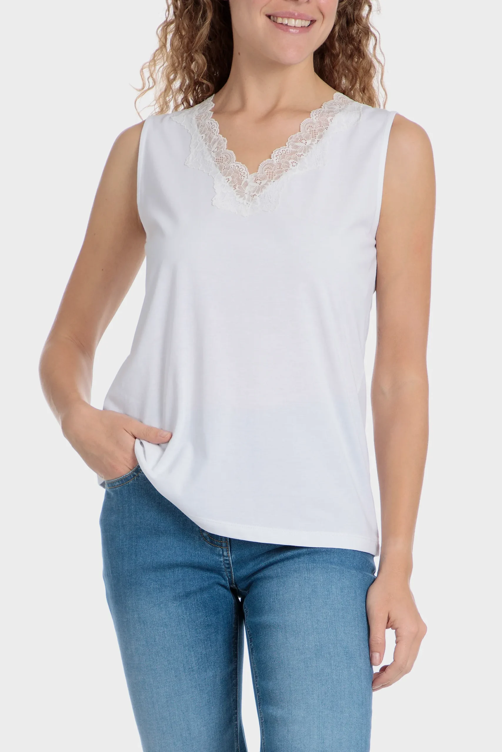 T-shirt; détails en dentelle; décolleté en v; sans manches.