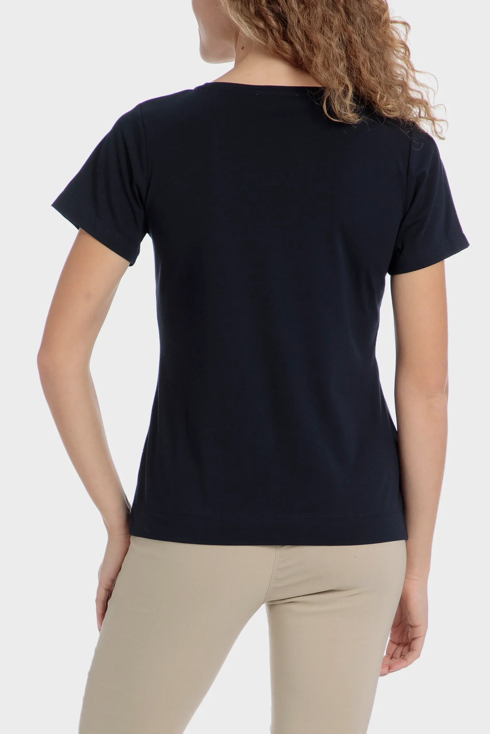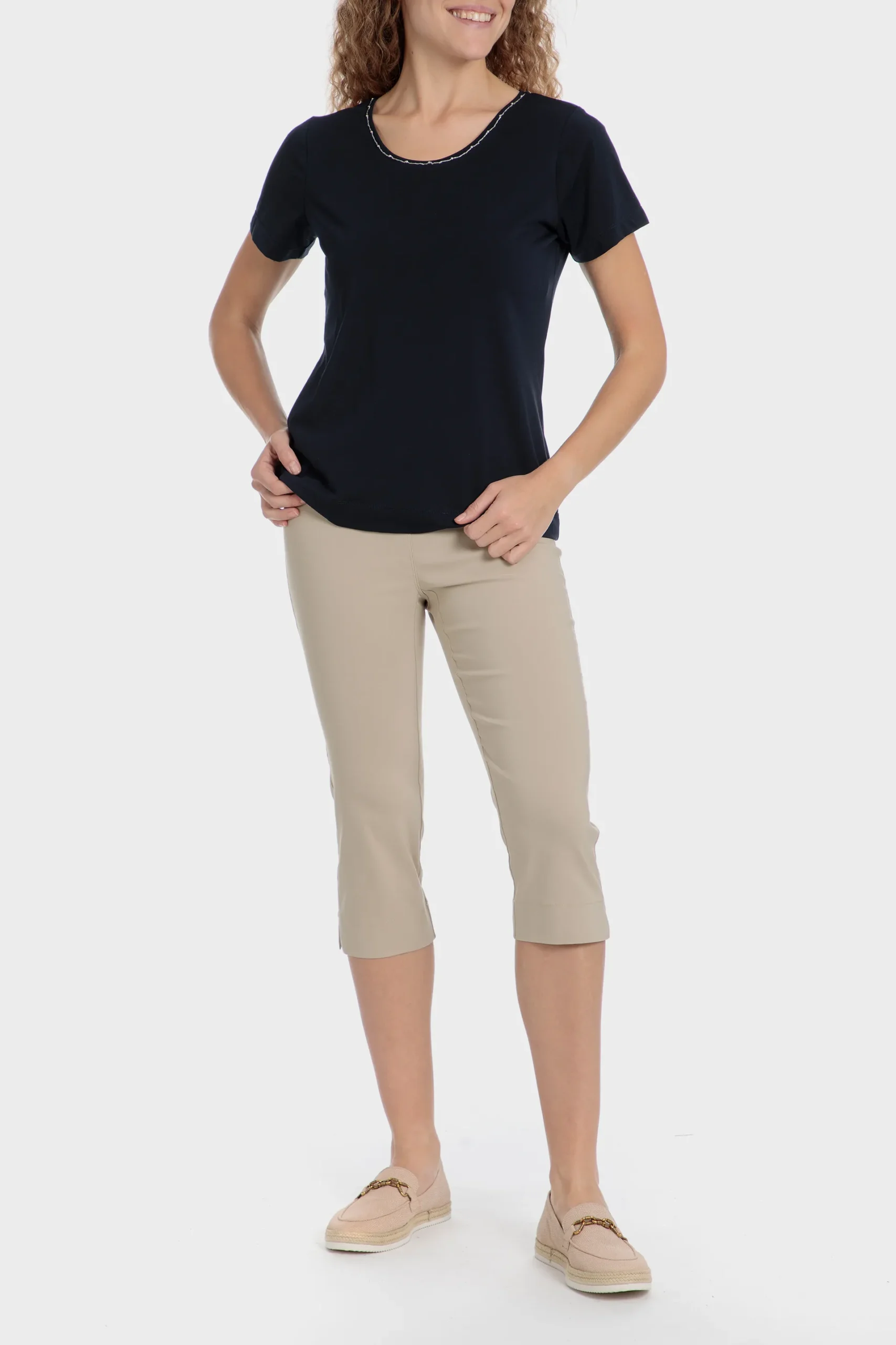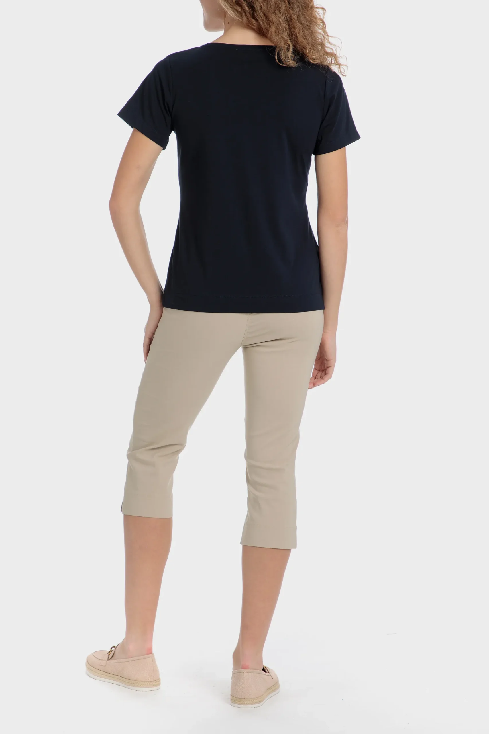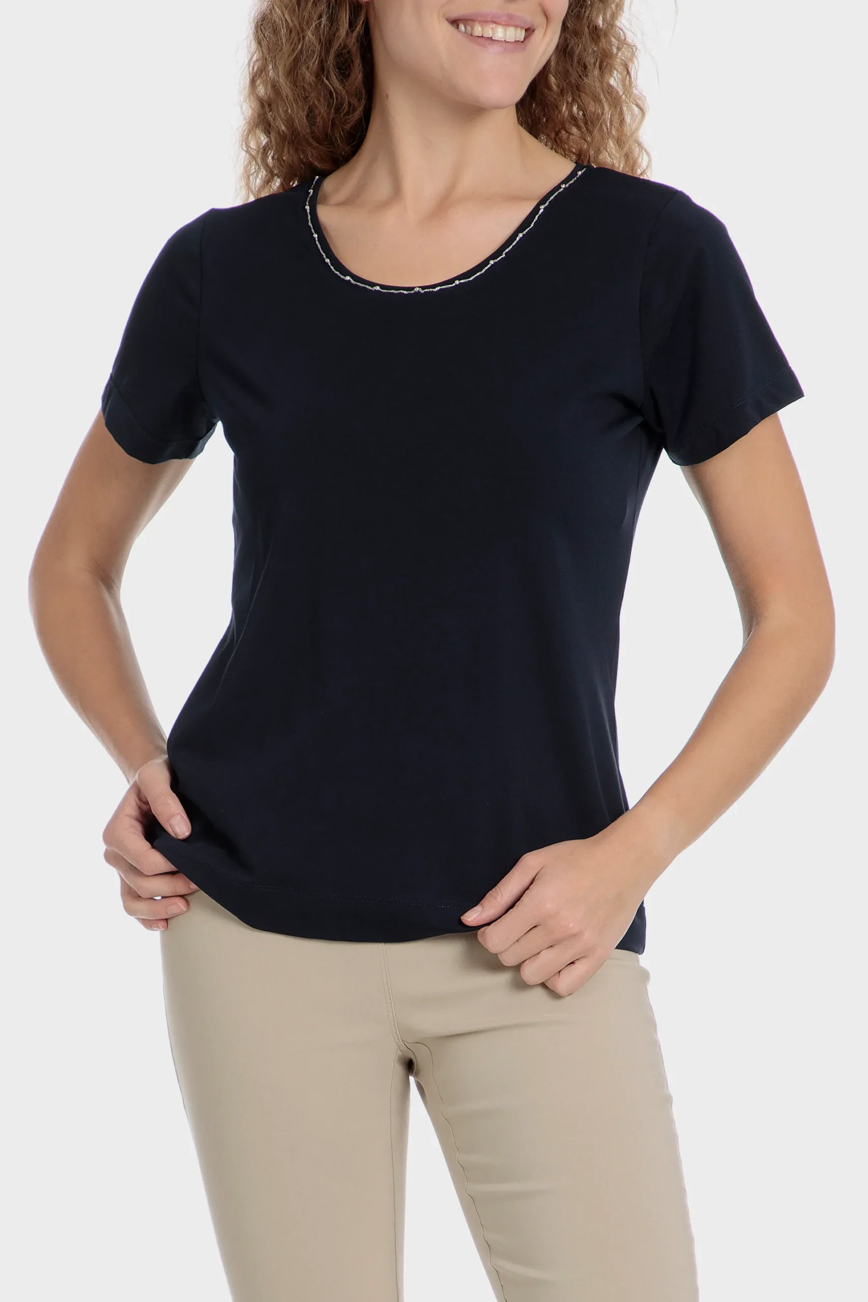 T-shirt fantaisie; col rond; manches courtes. Disponible en deux couleurs.