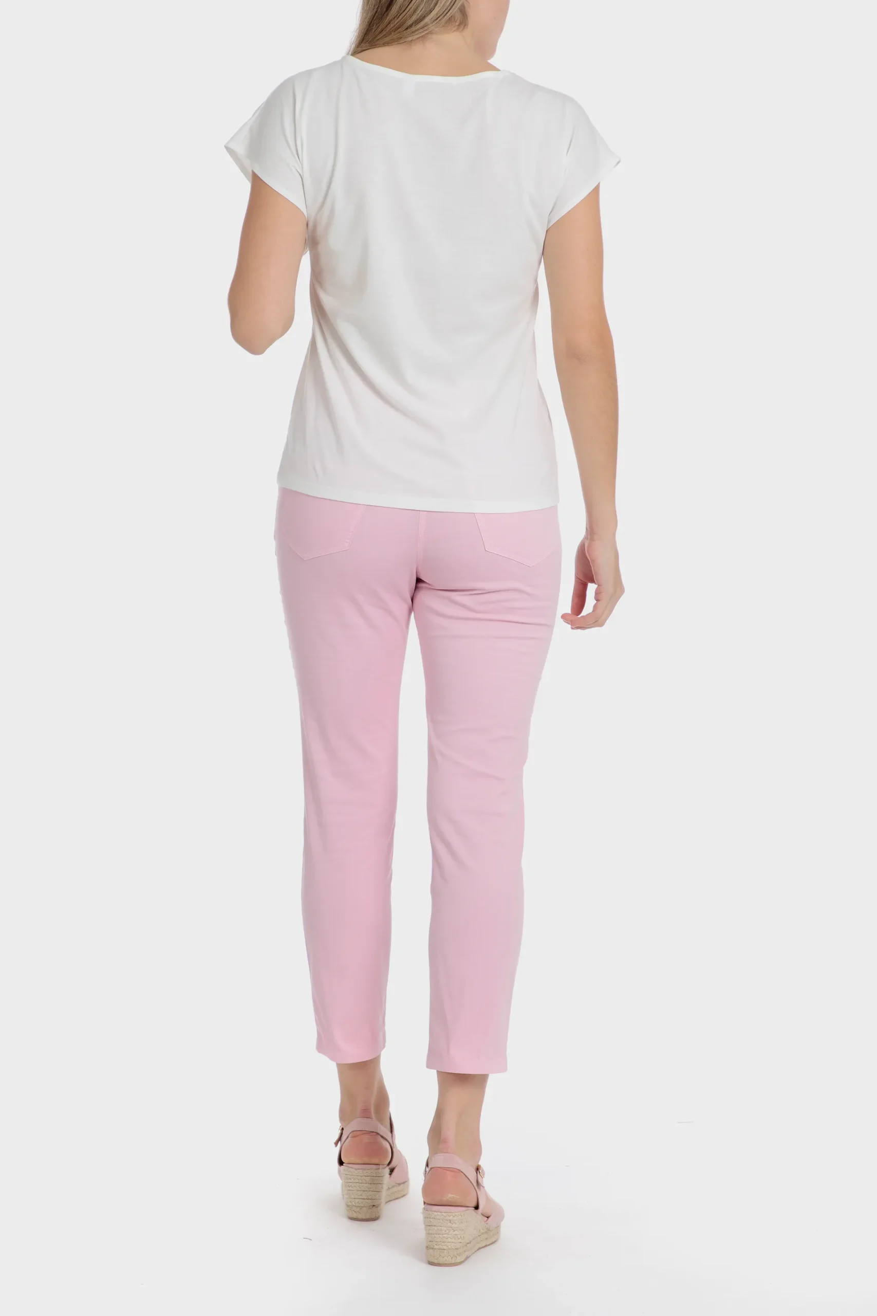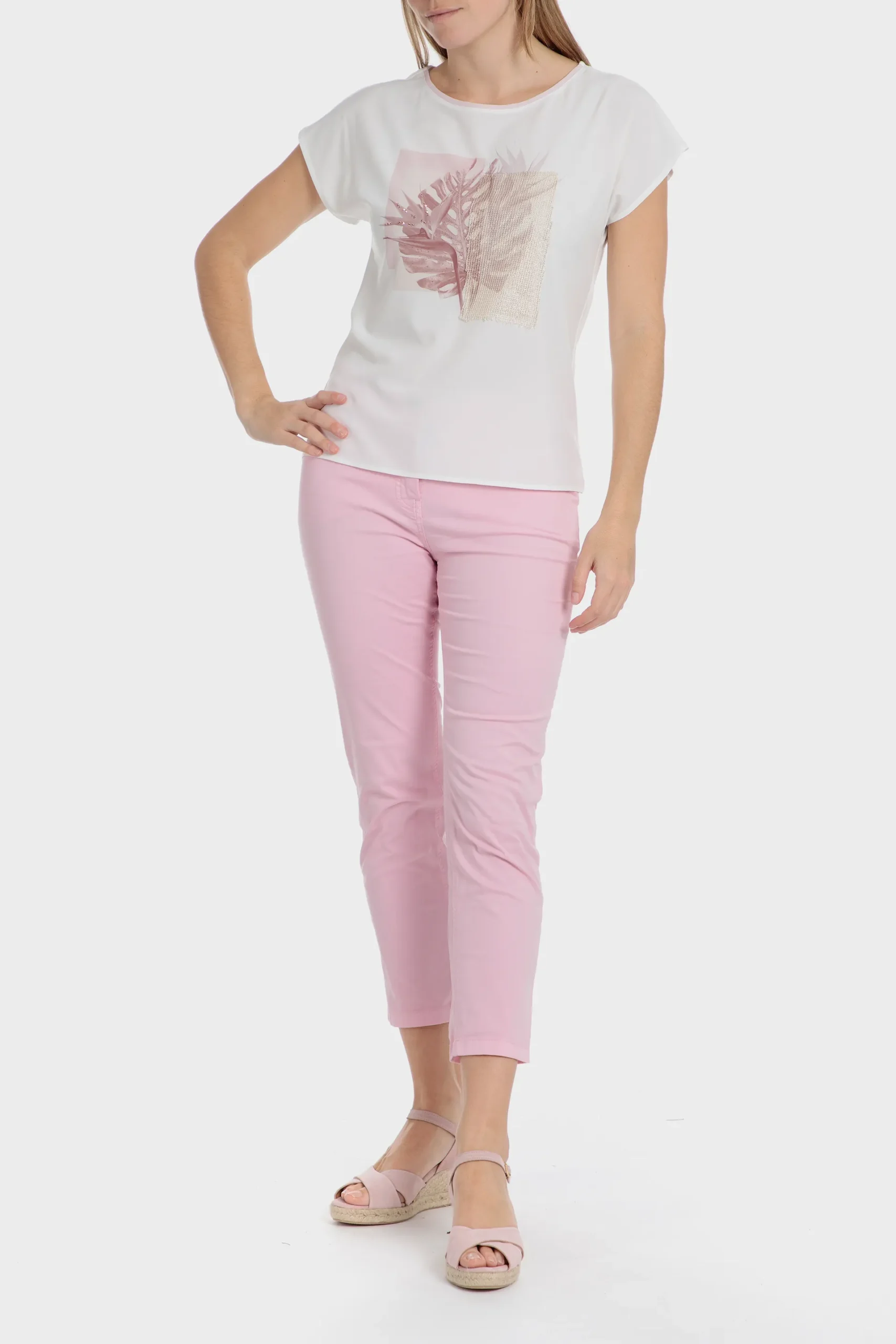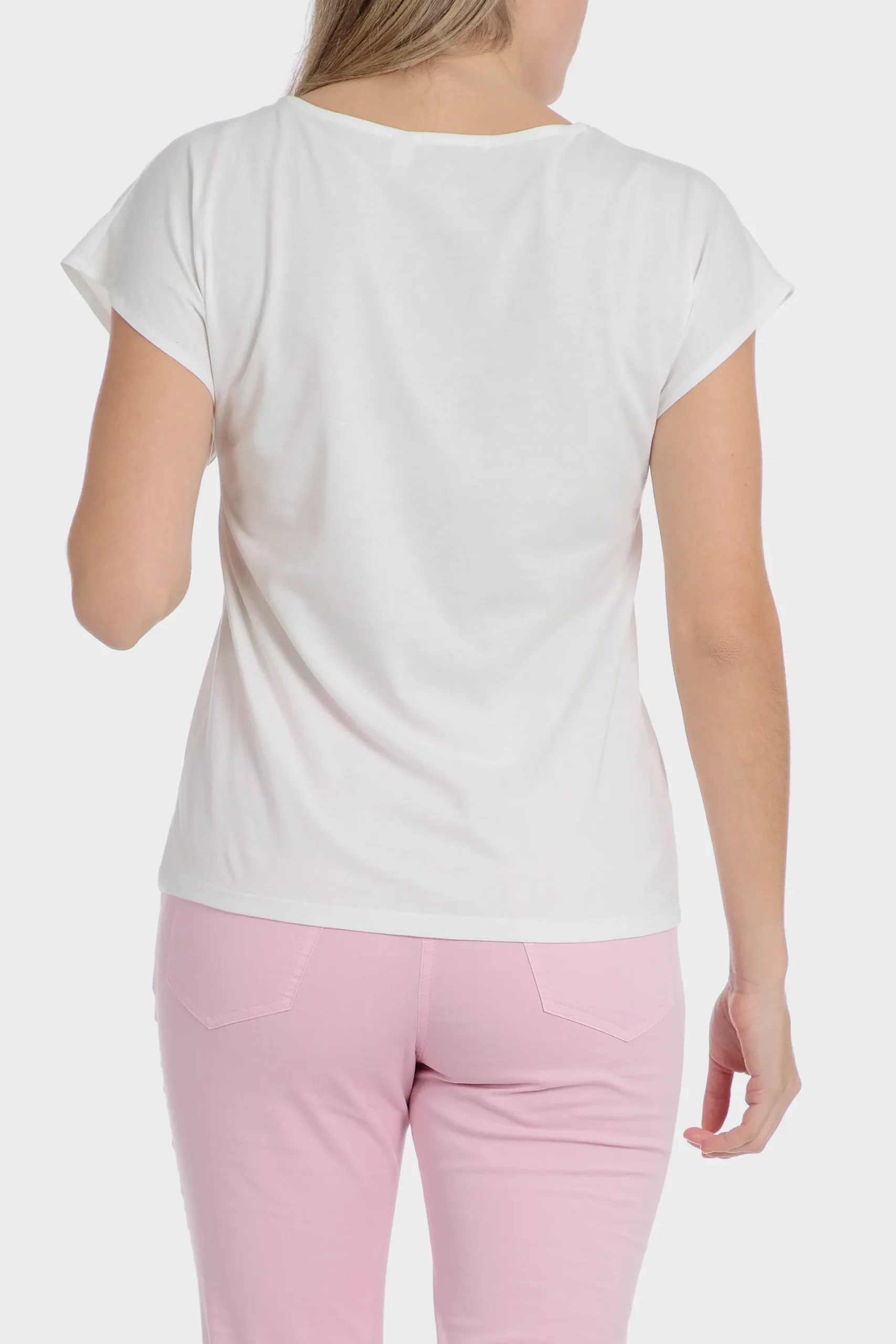 T-shirt imprimé; détails fantaisie; col rond; manches courtes.
