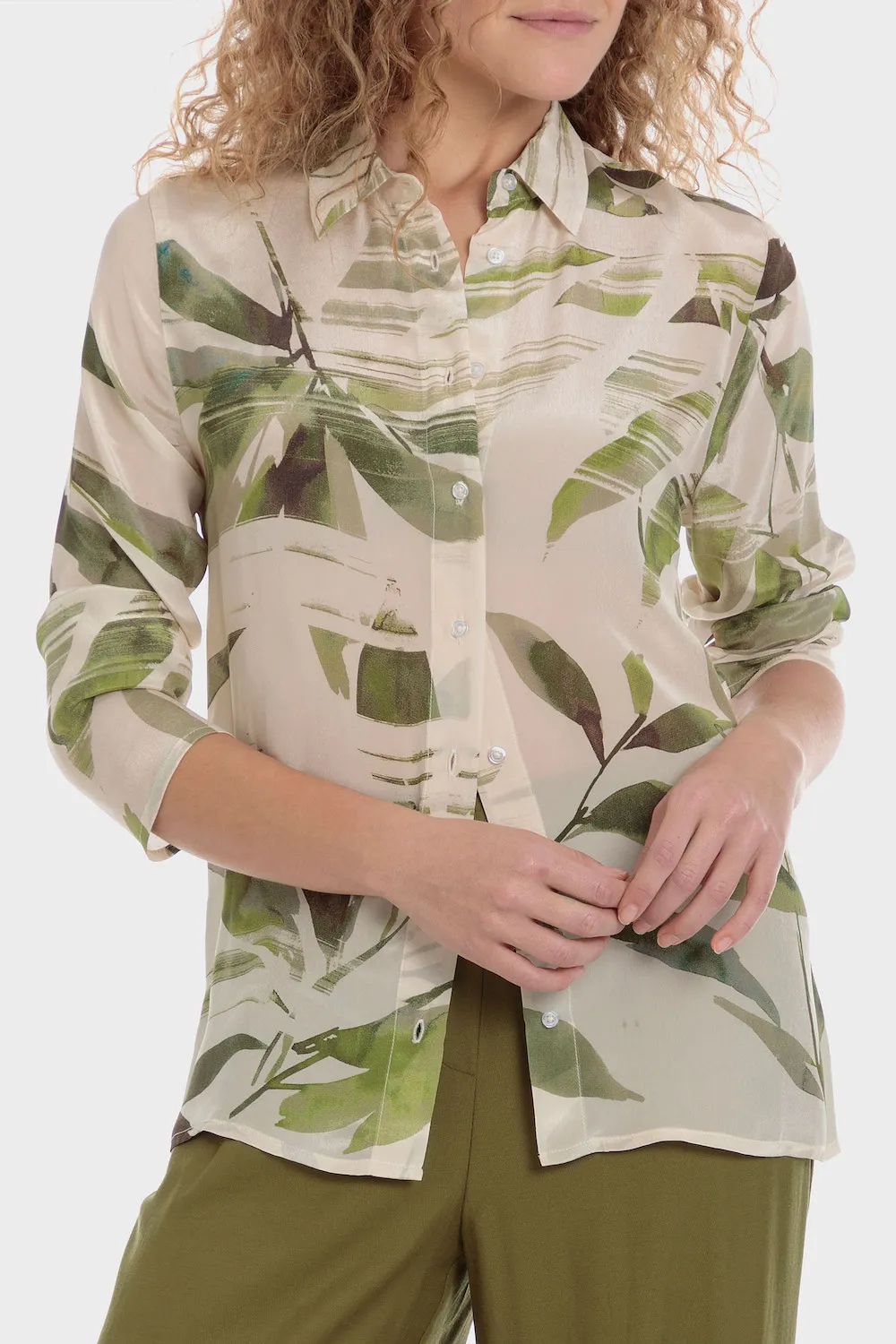 Chemise imprimée, manches longues, fermeture boutonnée sur le devant.