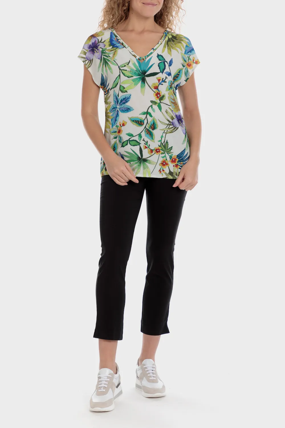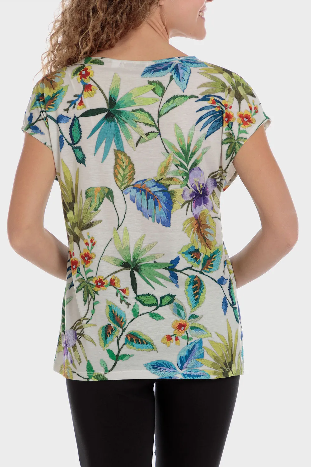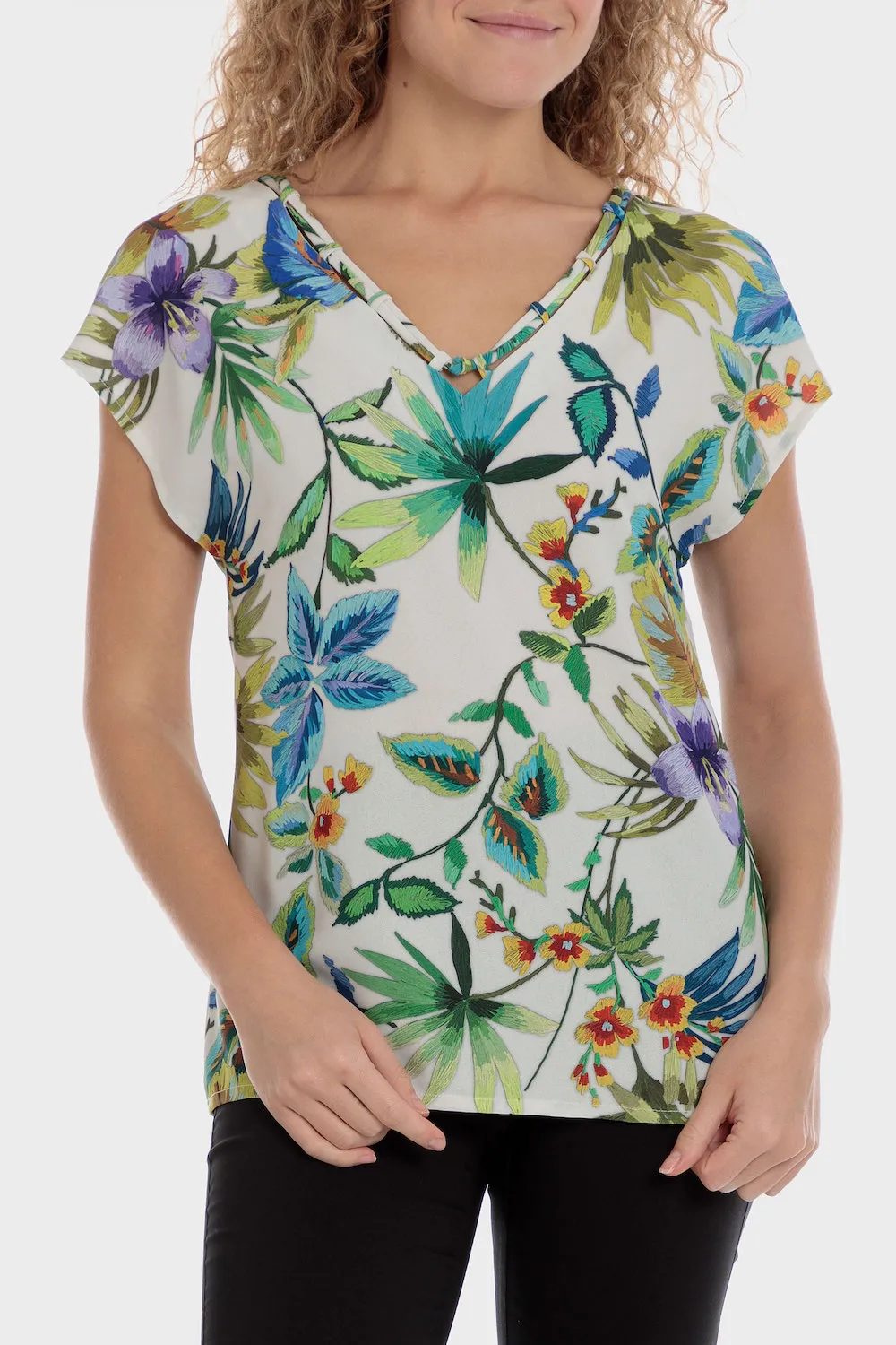 T-shirt imprimé, doublure intérieure, col fantaisie, manches courtes.