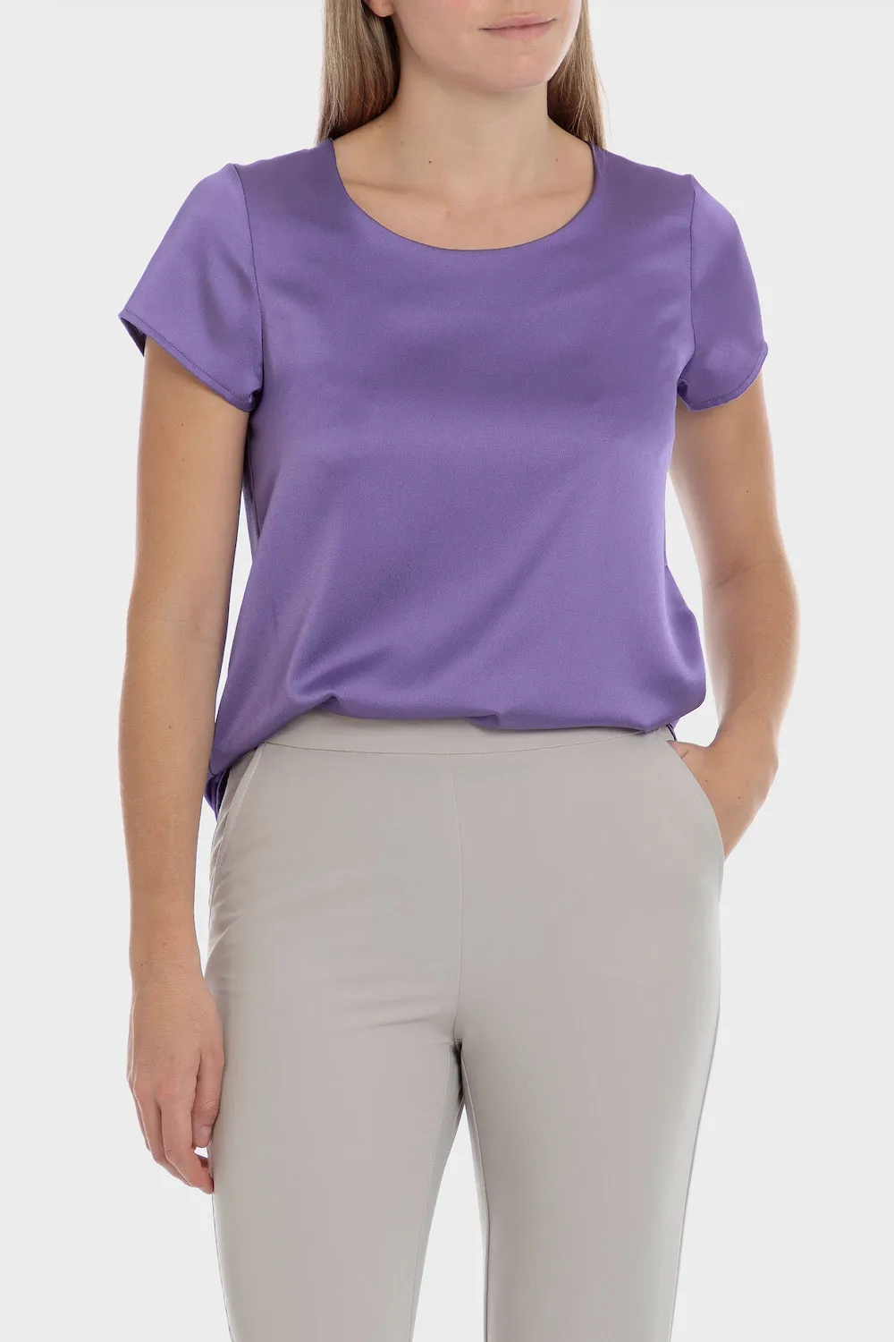 Top plusieurs couleurs, col rond, manches courtes. Disponible dans plusieurs couleurs.